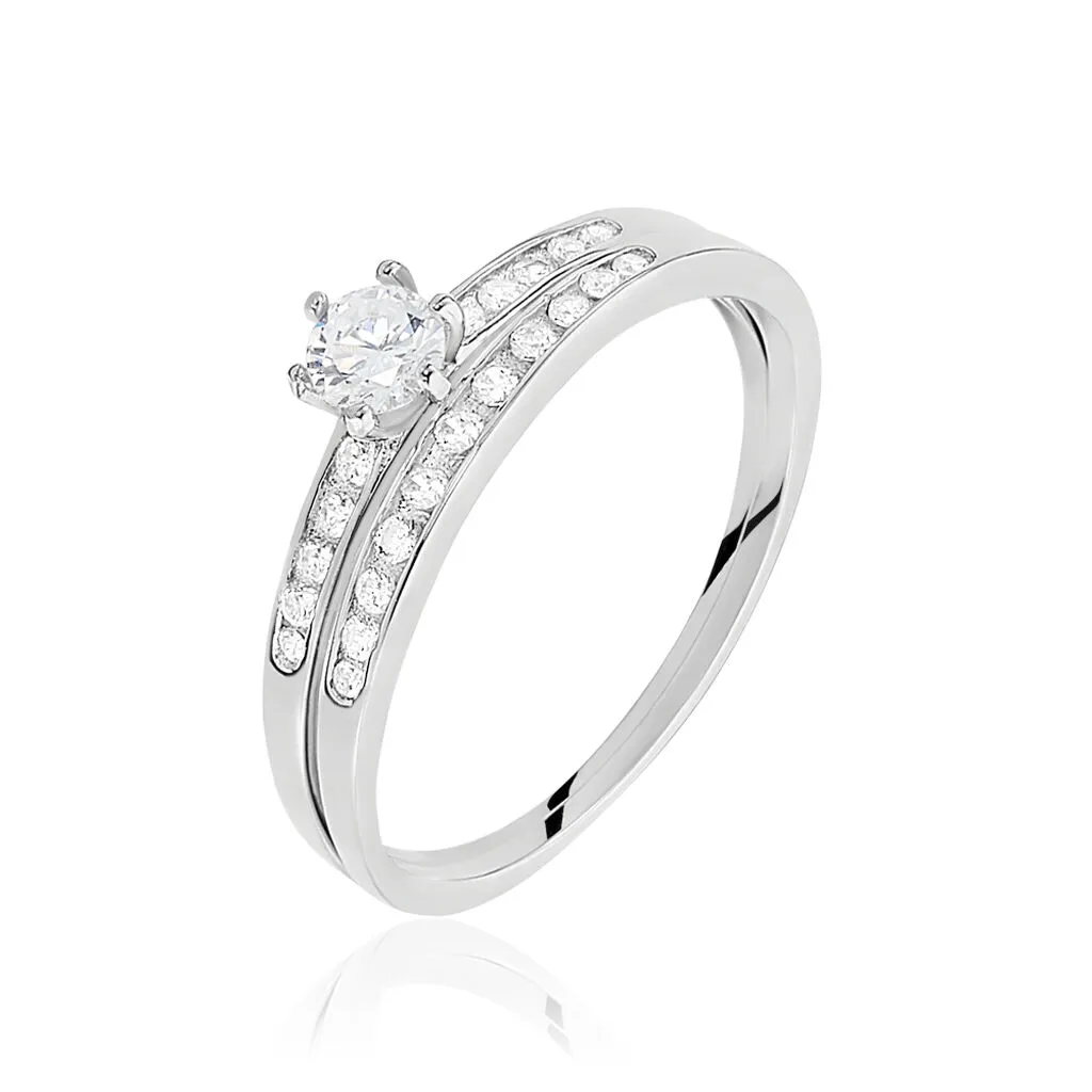 Duo Solitaire Anneau Argent Blanc 925/1000 Oxyde De Zirconium Anneau Oxydes De Zirconium