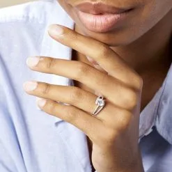 Bague Solitaire Argent Blanc 925/1000 Oxyde De Zirconium Central Serti 4 Griffes Accompagnee Oxydes De Zirconium