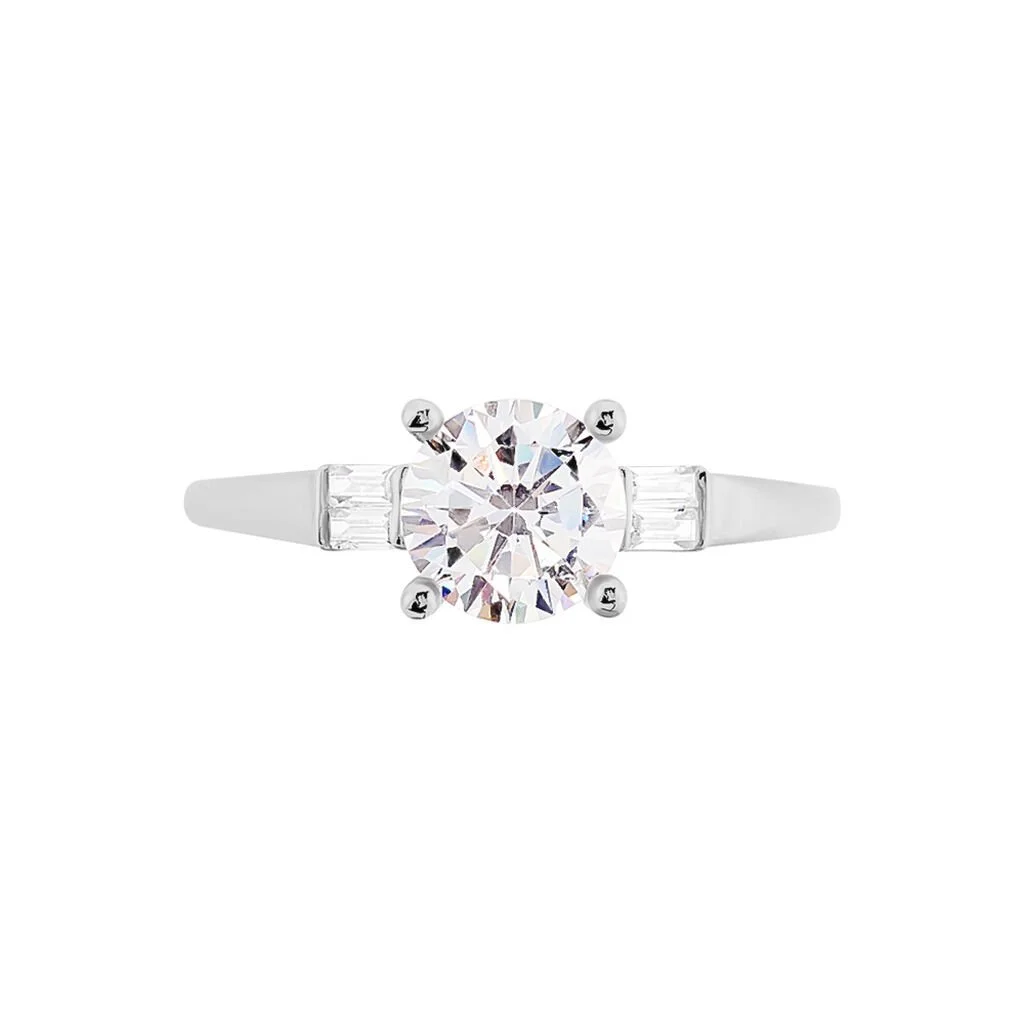 Solitaire Or Blanc 375/1000 Accompagne Oxydes De Zirconium Baguettes