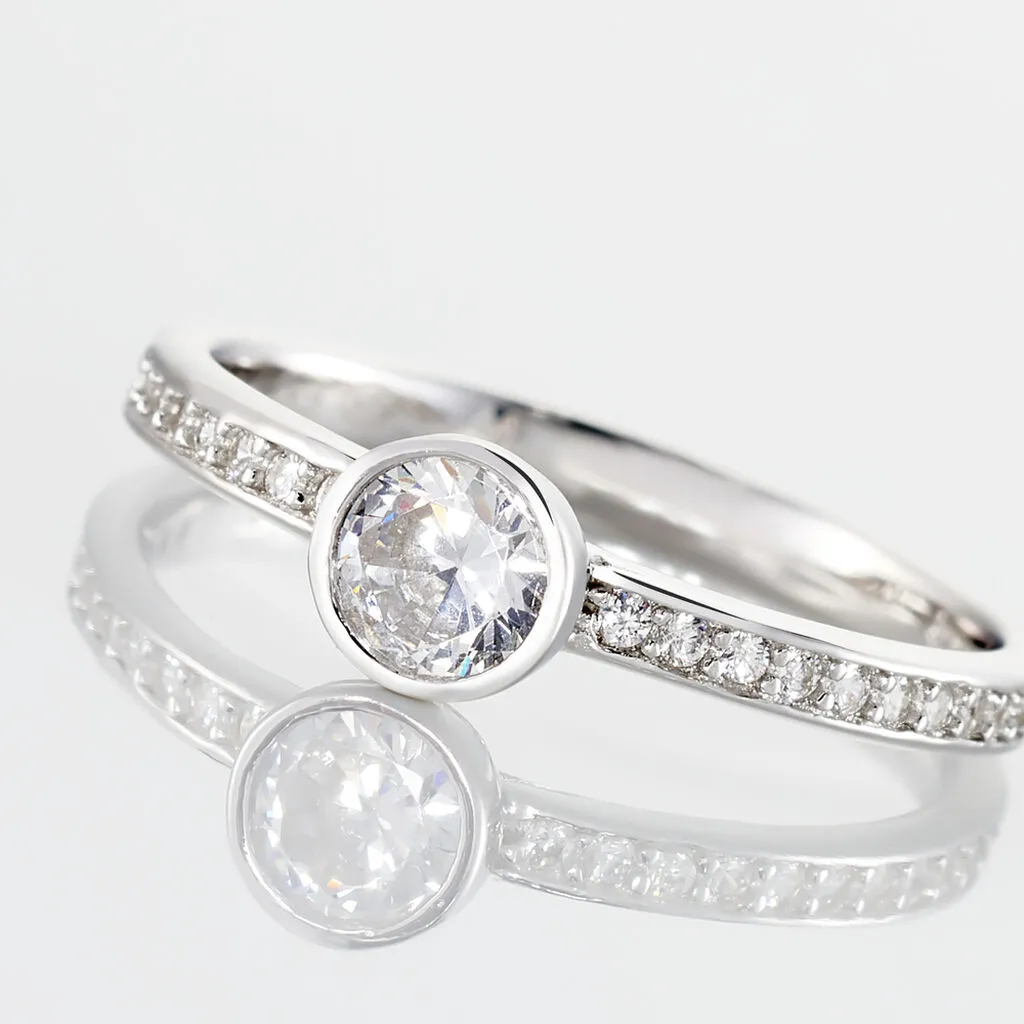 Bague Solitaire Argent Blanc 925/1000 Oxyde De Zirconium Serti Accompagne Oxydes De Zirconium
