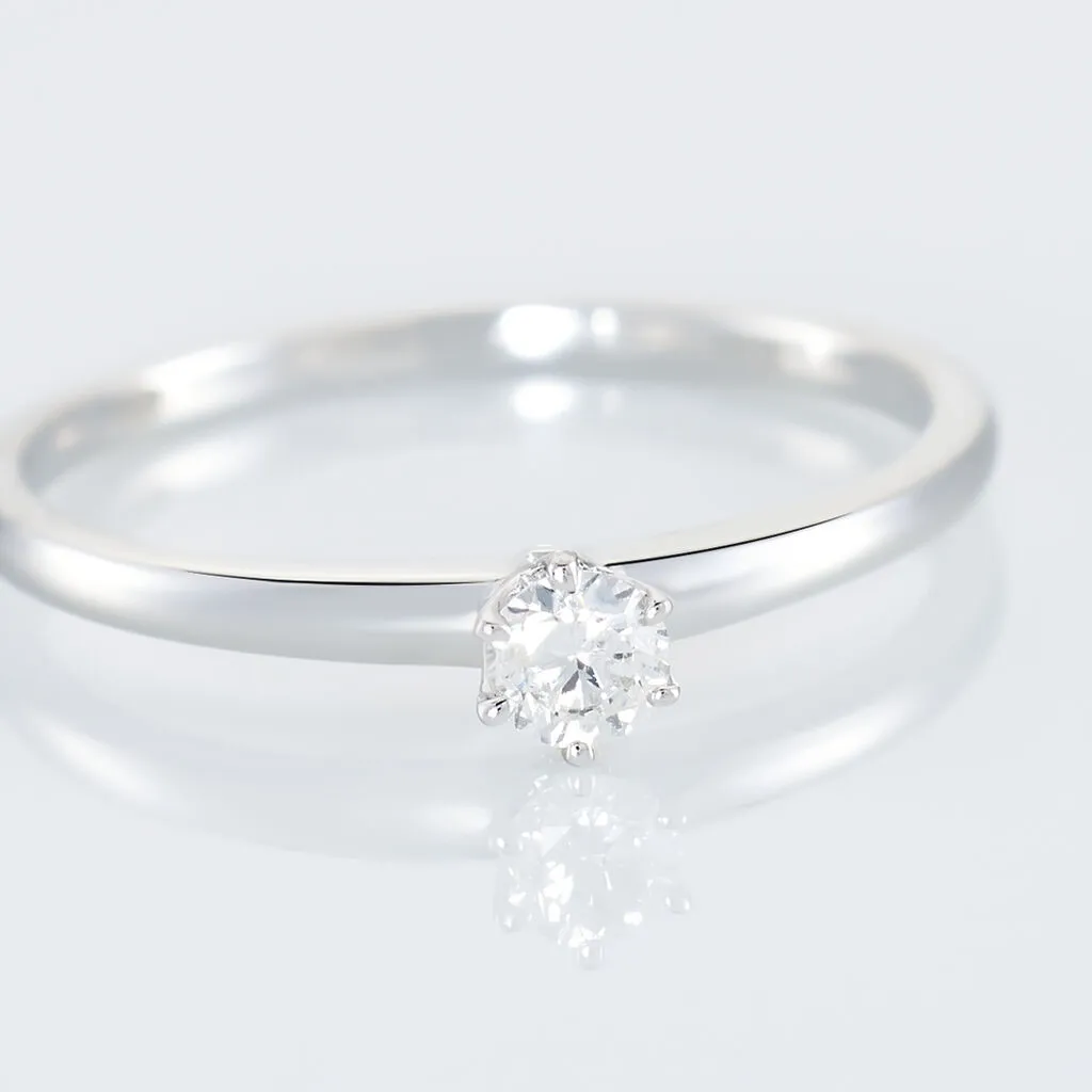 Solitaire Or Blanc 375/1000 Diamant 0.15cts Serti 6 Griffes