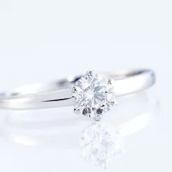 Solitaire Or Blanc 750/1000 Diamant Central Synthetique 0.50cts Serti 6 Griffes