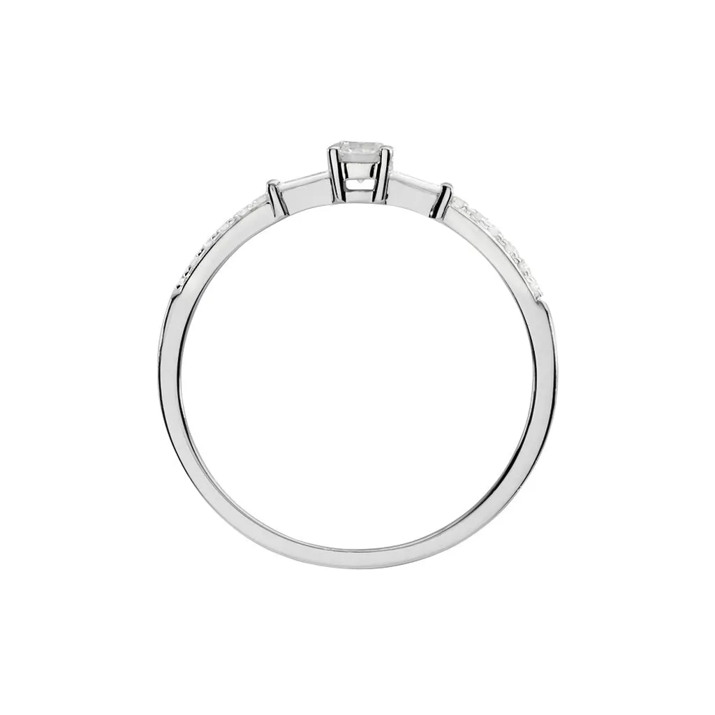 Solitaire Or Blanc 750/1000 Diamant Central 0.15cts Accompagne Diamants Baguettes + Pavage Diamants