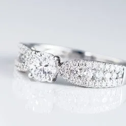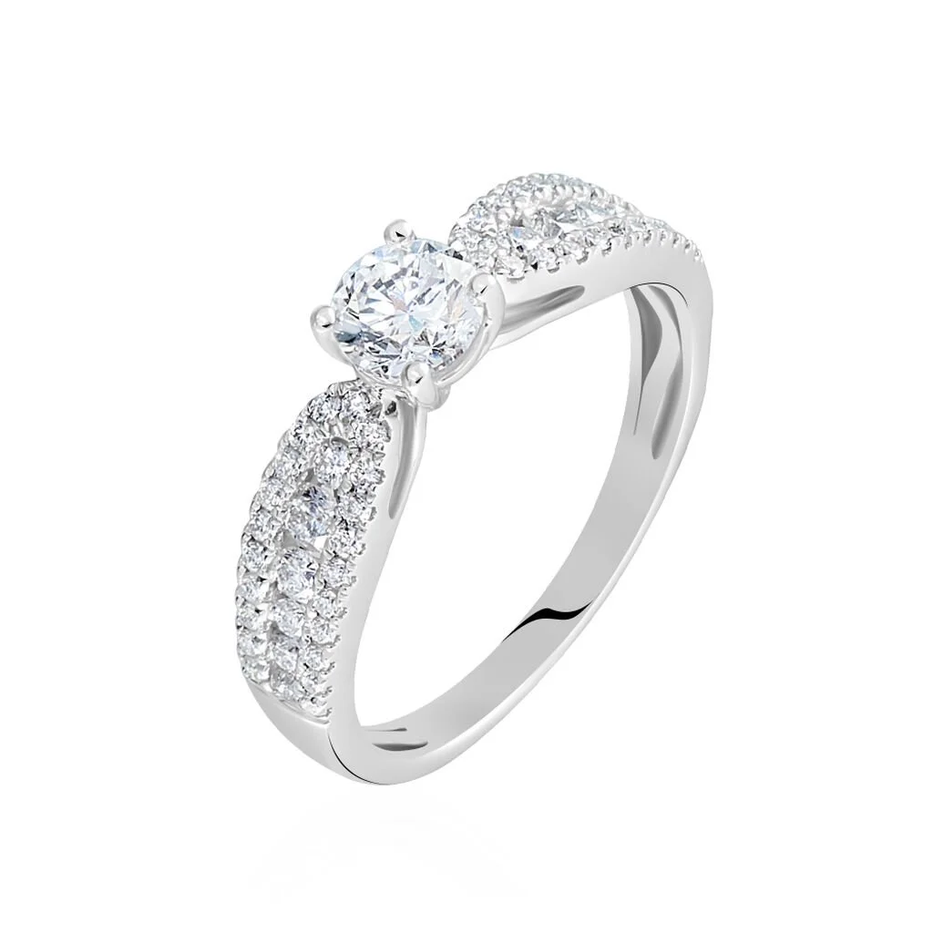 Solitaire Or Blanc 750/1000 Diamant Central Synthetique 0.50ct Accompagne Diamants Synthetique