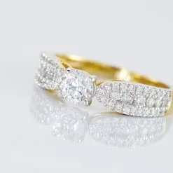 Solitaire Or Jaune 750/1000 Diamant Central Synthétique 0.50ct Accompagne Diamants Synthétique