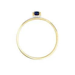 Bague Or Jaune 375/1000 Saphir Central 0.39ct Serti 4 Griffes Et Diamants