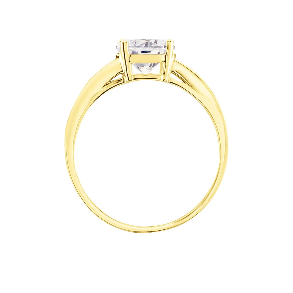 Solitaire Or Jaune 375/1000 4 Griffes Corps De Bague Accompagne Oxydes De Zirconium Serti Rail