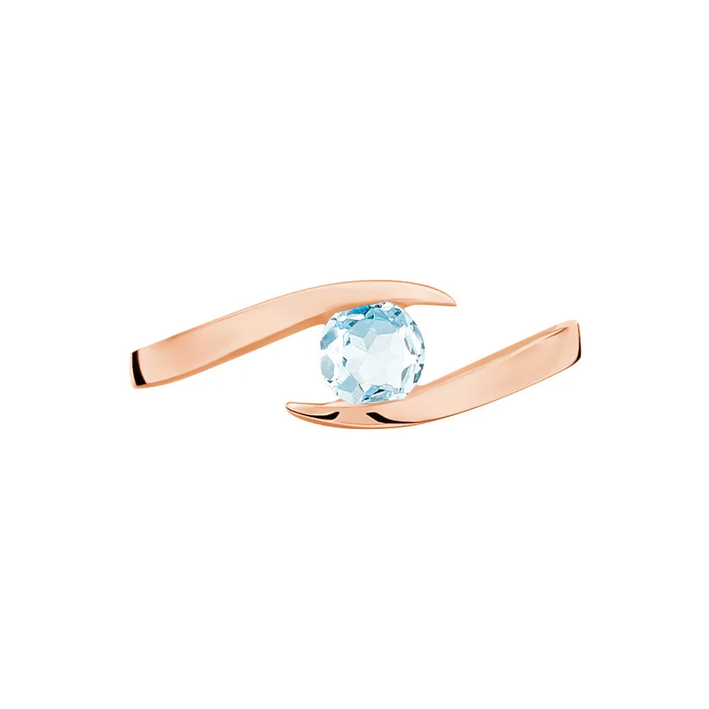 Bague Or Rose 375/1000 Topaze Ronde Serti Couteau
