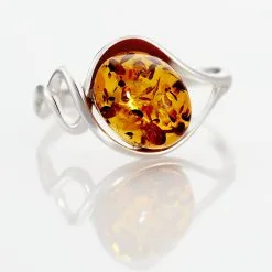Bague Argent Blanc 925/1000 Corps De Bague Vrille Et Ambre Cognac