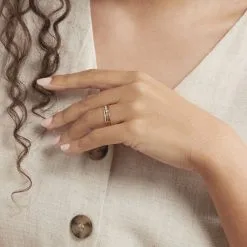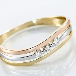 Bague Or Tricolore 375/1000 3 Rangs Ajoures Trilogie Diamants 0.08cts