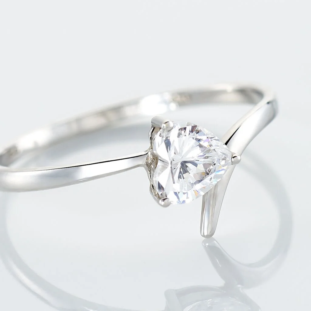 Bague Or Blanc 375/1000 Coeur Oxyde De Zirconium