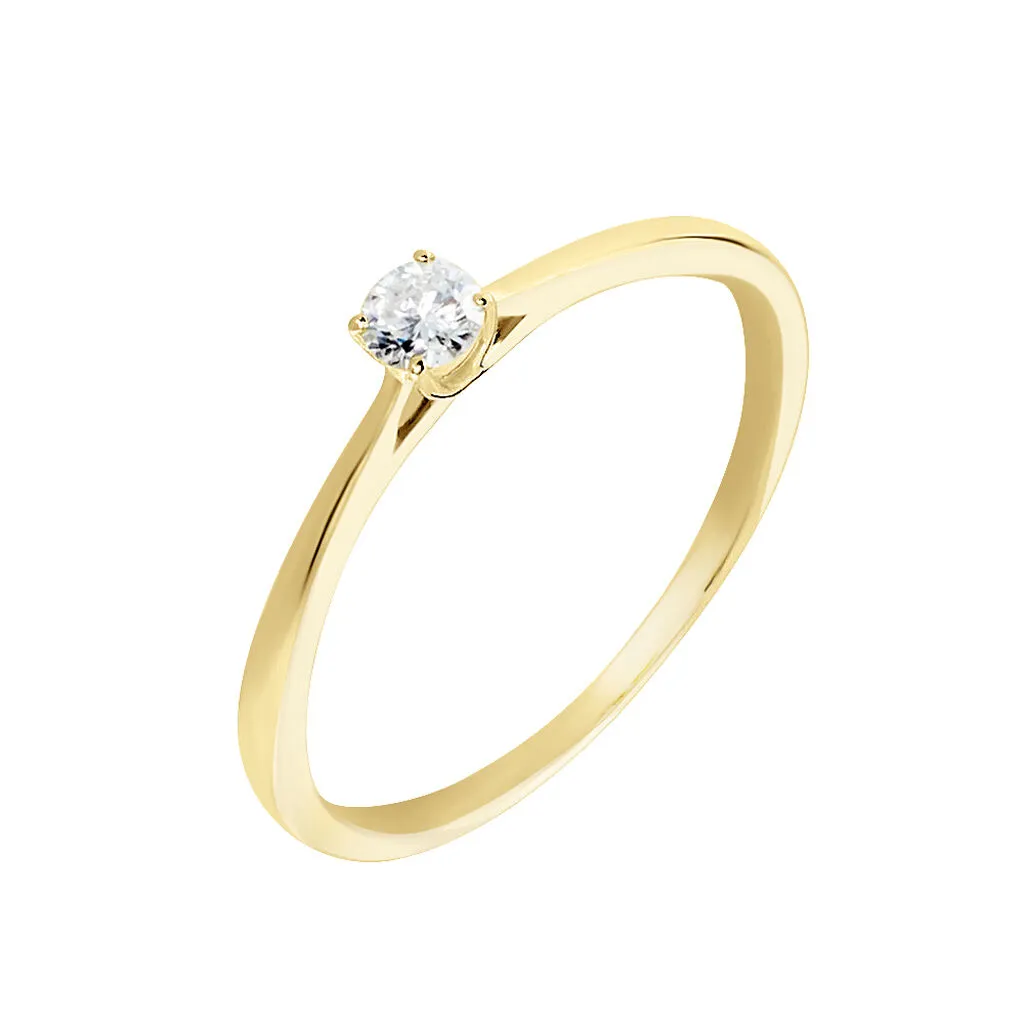 Bague Solitaire Or Jaune 375/1000 Diamant 0.10cts Serti 4 Griffes