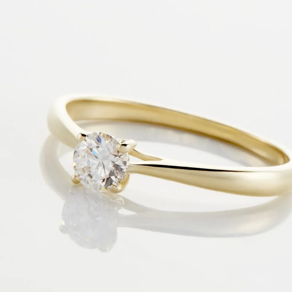 Bague Solitaire Or Jaune 375/1000 Diamant 0.41cts Serti 4 Griffes