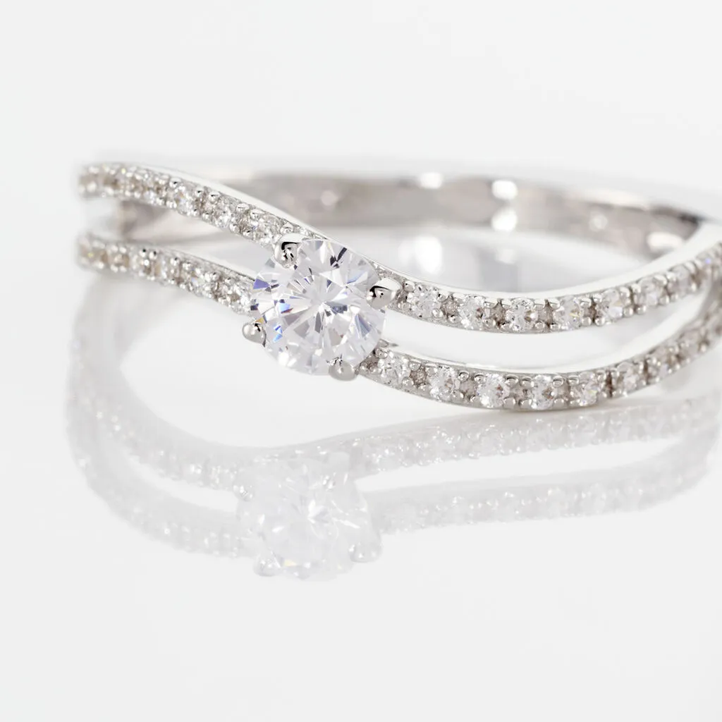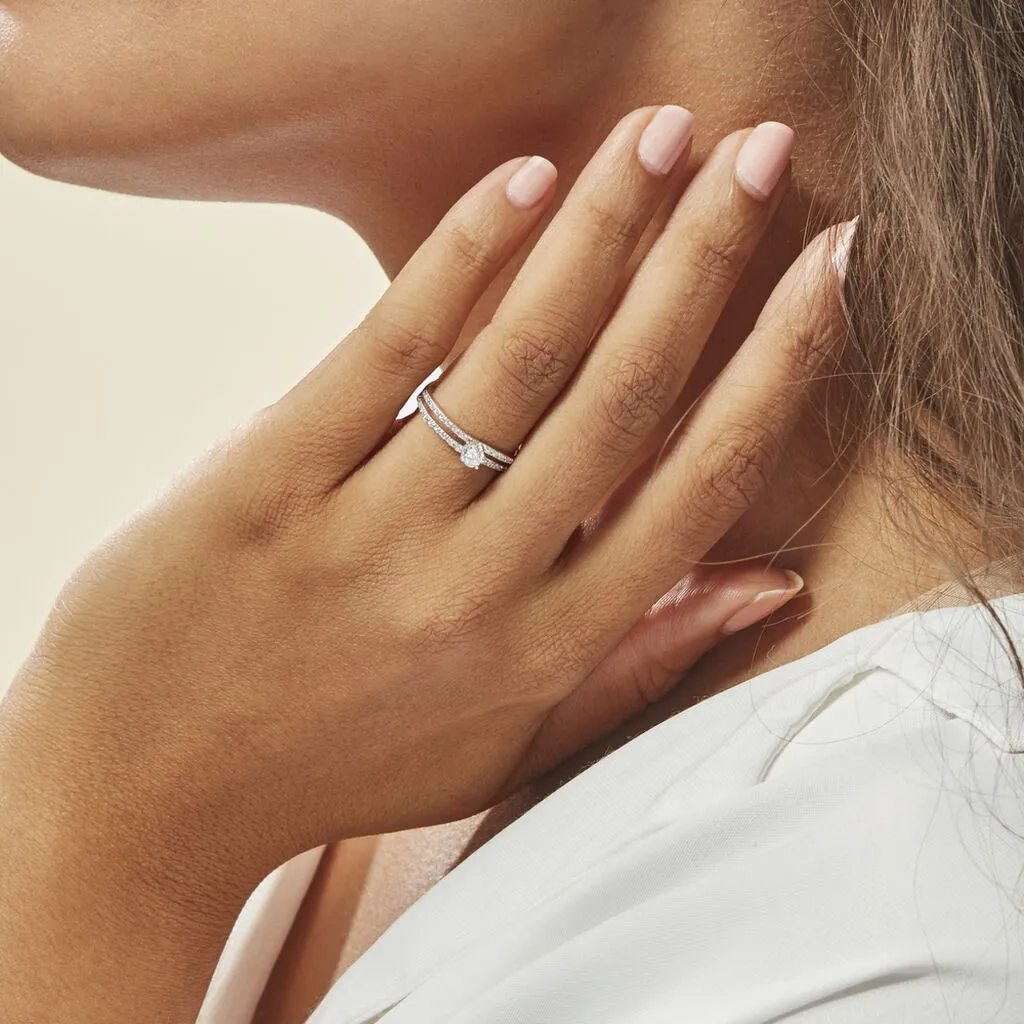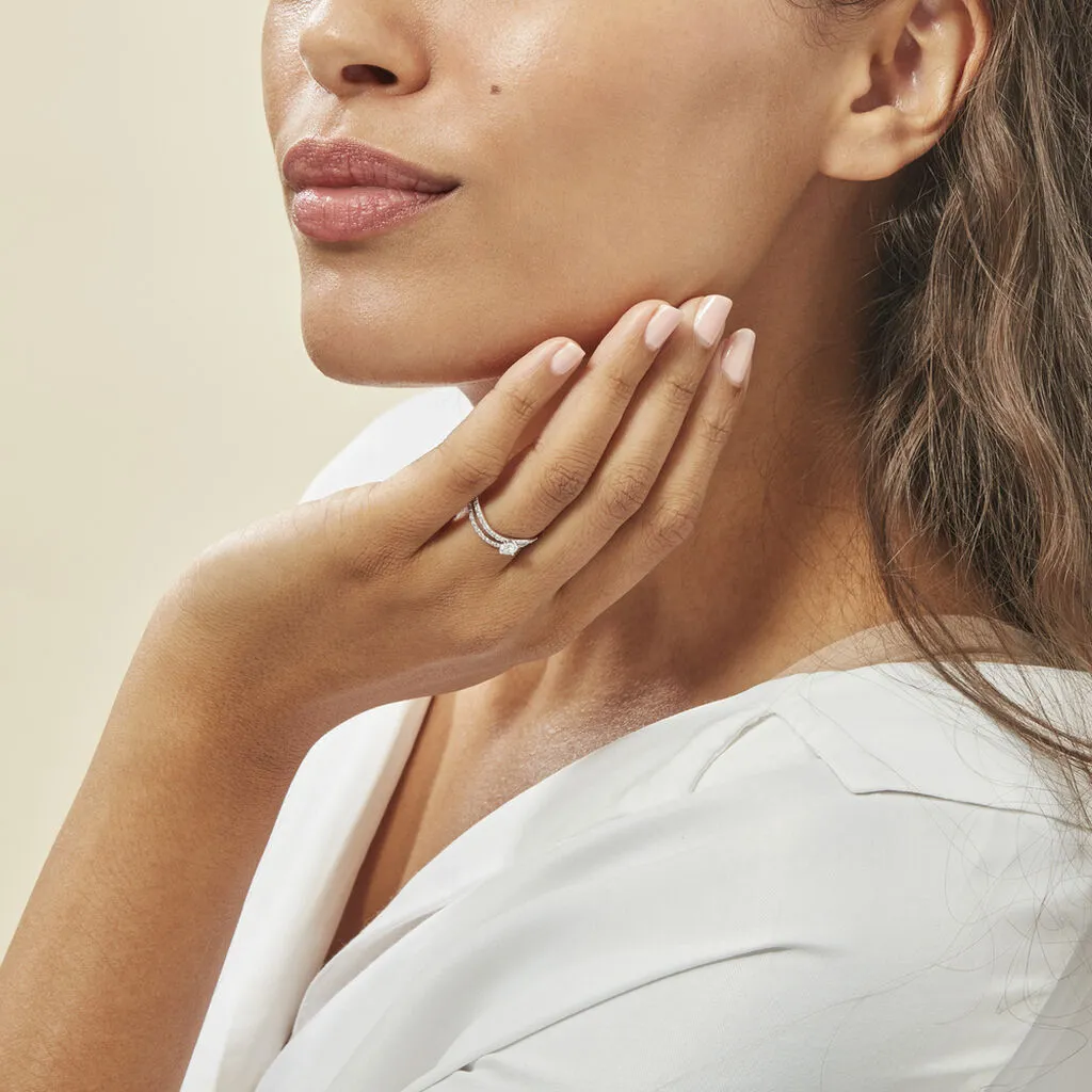Bague Vrille Double Or Blanc Oxyde De Zirconium