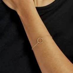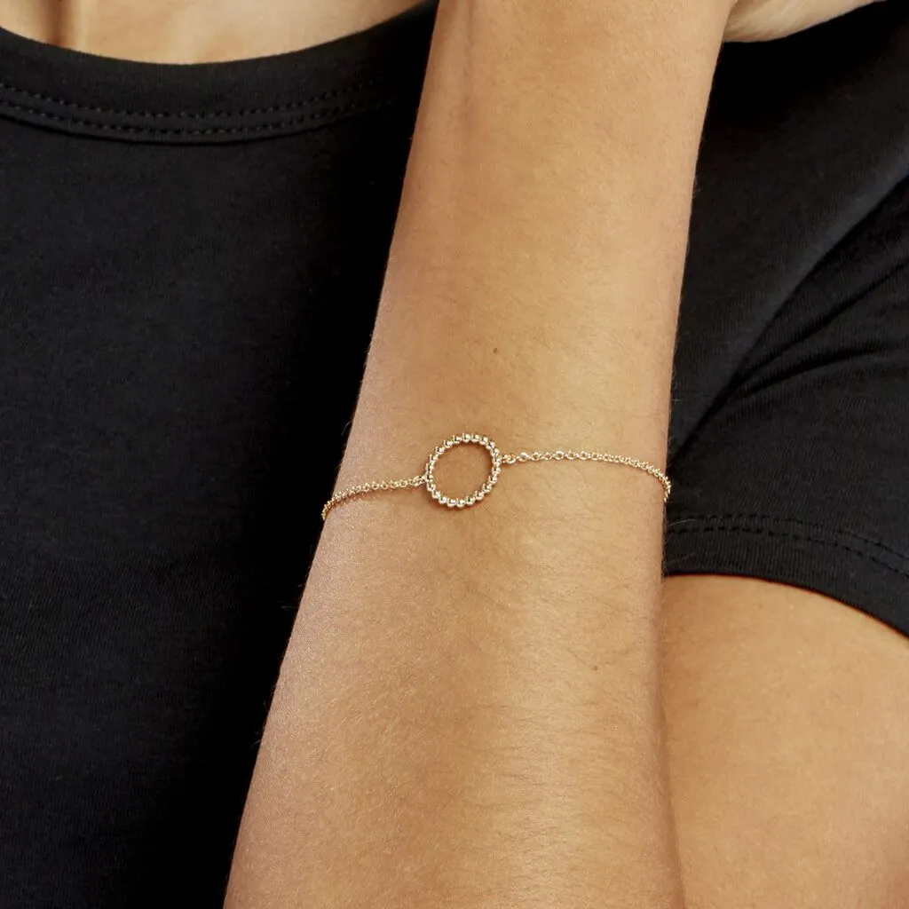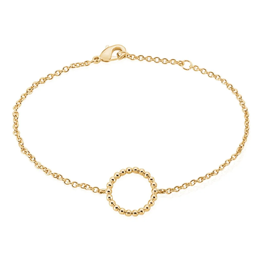 Bracelet Plaqué Or Jaune Forme Cercle Ajoure Effet Perlé 18cm