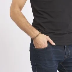 Les hommes au style affirmé seront facilement attirés par ce bracelet. Son design original va ajouter du caractère à votre look. Composé de boules d’œil-de-tigre marron et d’un gouvernail en acier, ce beau bracelet possède un charme particulier. Il existe aussi sous une autre variété de pierre.