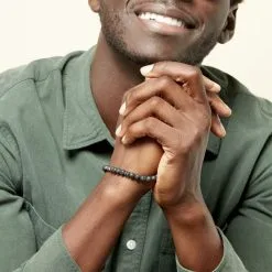 Ce bracelet intemporel accompagne à merveille une tenue branchée. Difficile de nier le charme de ses boules d’agates noires agrémentées de quelques motifs en acier. Sobre, mais charmant, cet accessoire apporte du caractère à votre look. Il mesure 21 cm. Le bracelet existe aussi en d’autres matières.