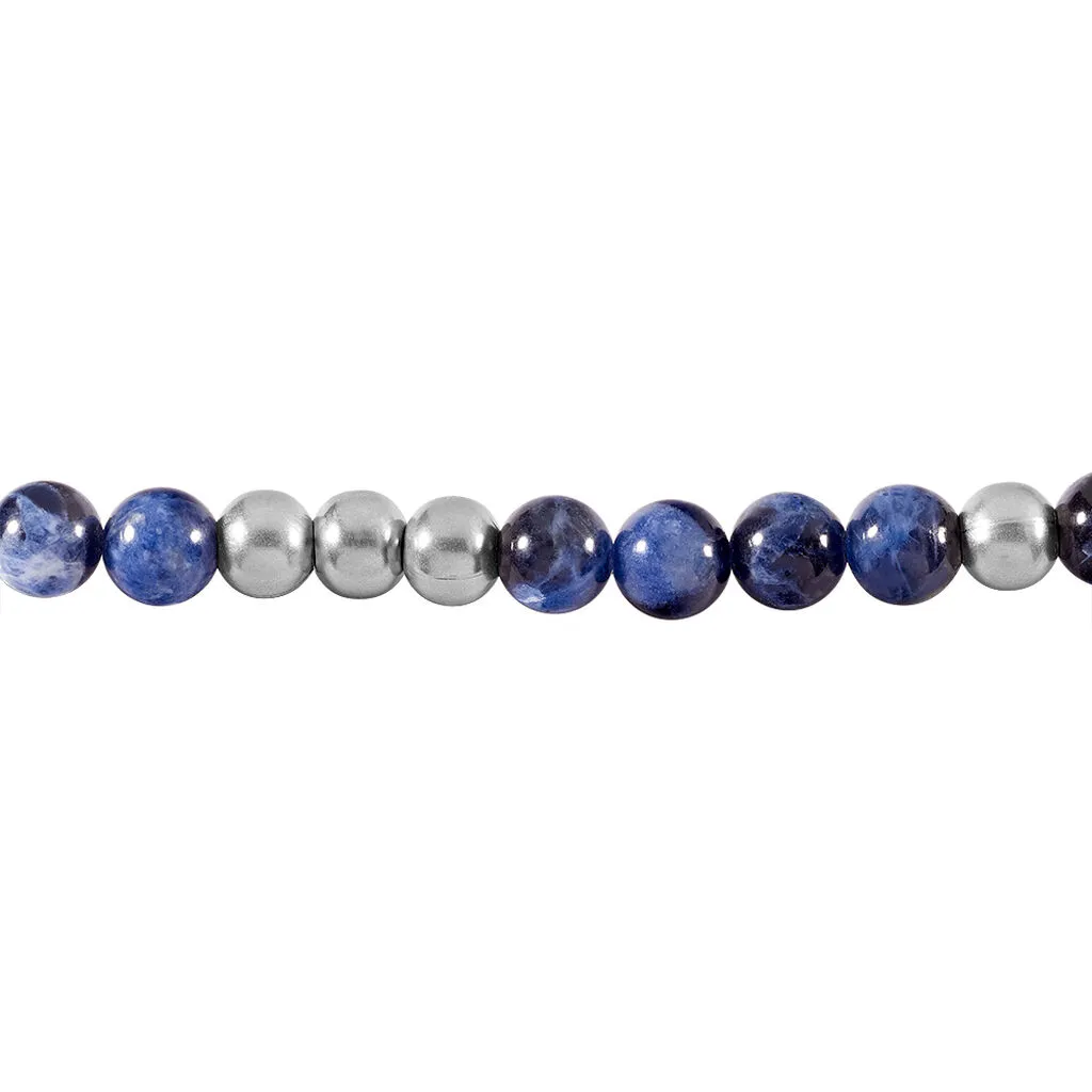 Bracelet Acier Blanc Boules Bleues Azur 21cm