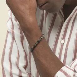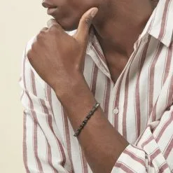 Bracelet Ajustable Acier Gris Et Noir Jaki