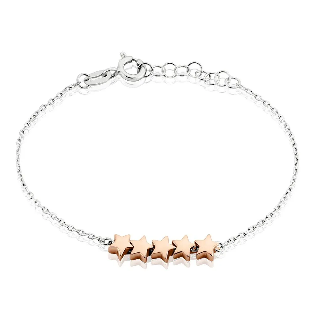 Bracelet Argent Bicolore 925/1000 Etoiles Maille Forcat Largeur 1.25mm 16cm