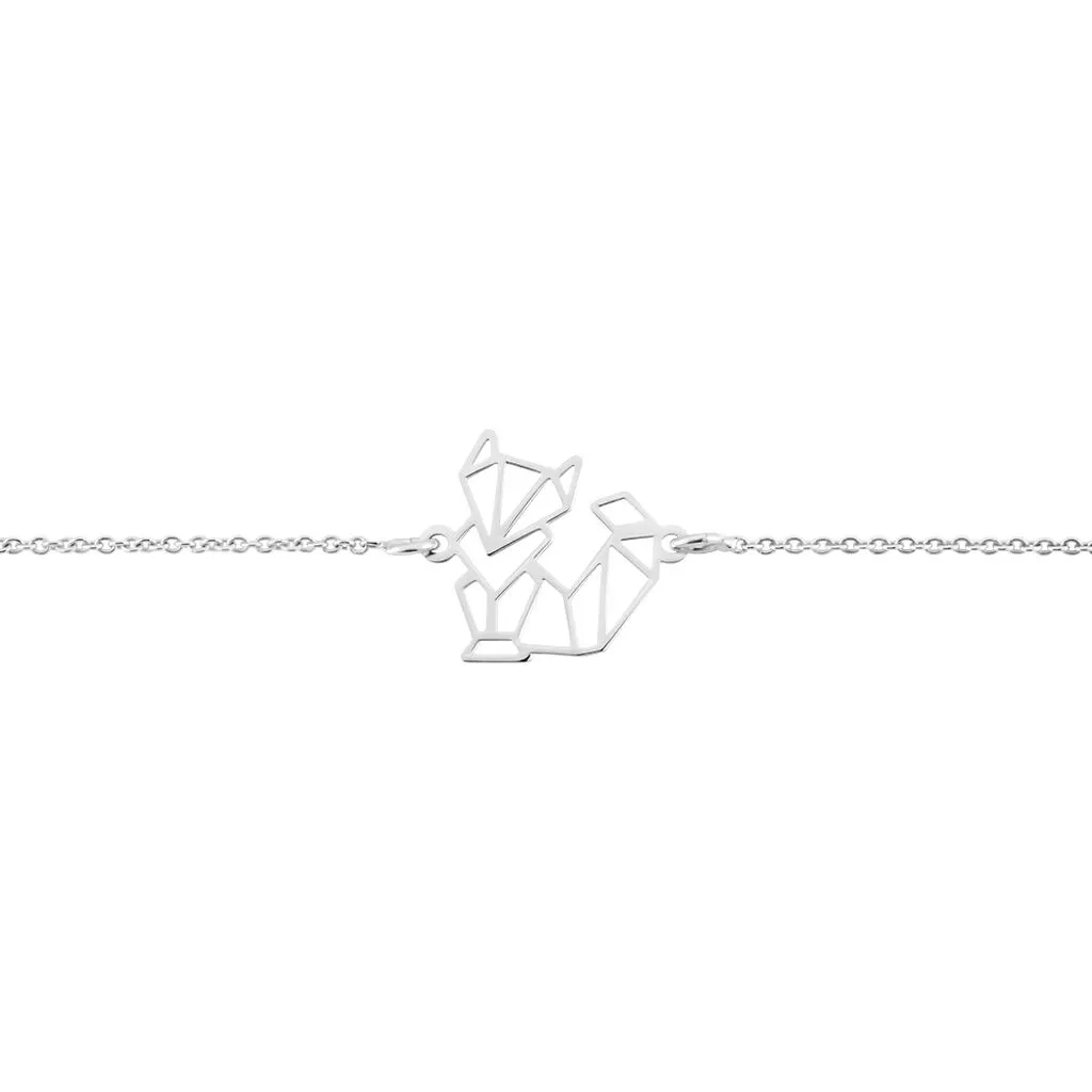 Bracelet Argent Blanc 925/1000 Renard Origami Chaine Jaseron 16cm