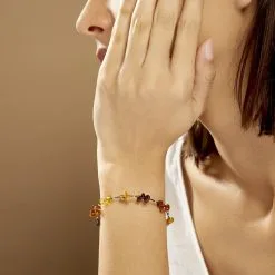 Bracelet Argent Blanc 925/1000 Ambres Multicolores Miel/cognac/marron Sur Cable Noir Fermoir Argent Blanc 925/1000 19cm