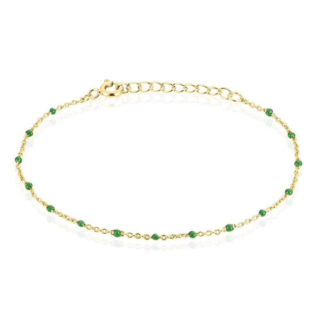 Bracelet Argent Dore 925/1000 Email Vert 18.5cm