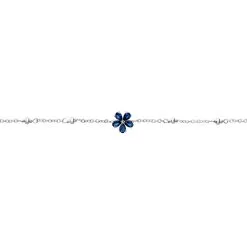 Bracelet Argent Blanc 925/1000 Fleur Serti Griffes Oxydes De Zirconium Bleus Maille Boules 19cm