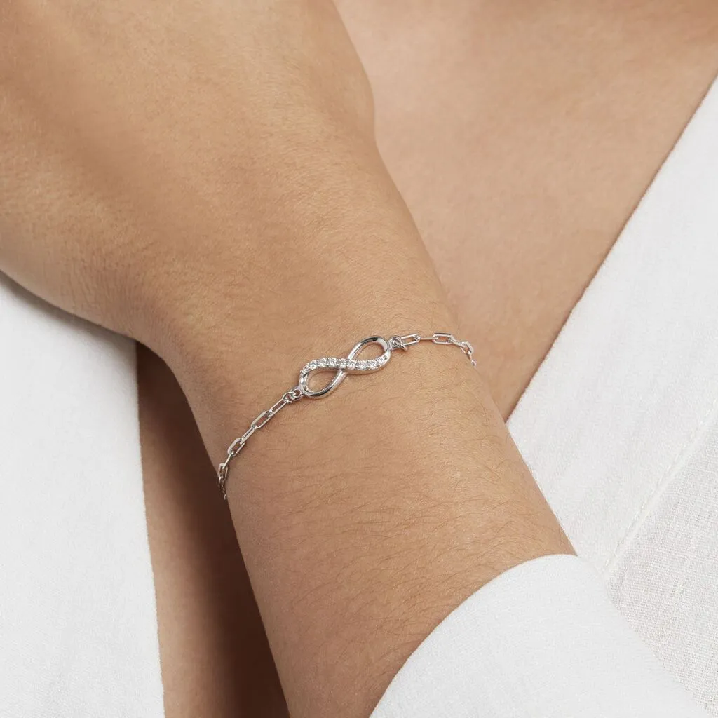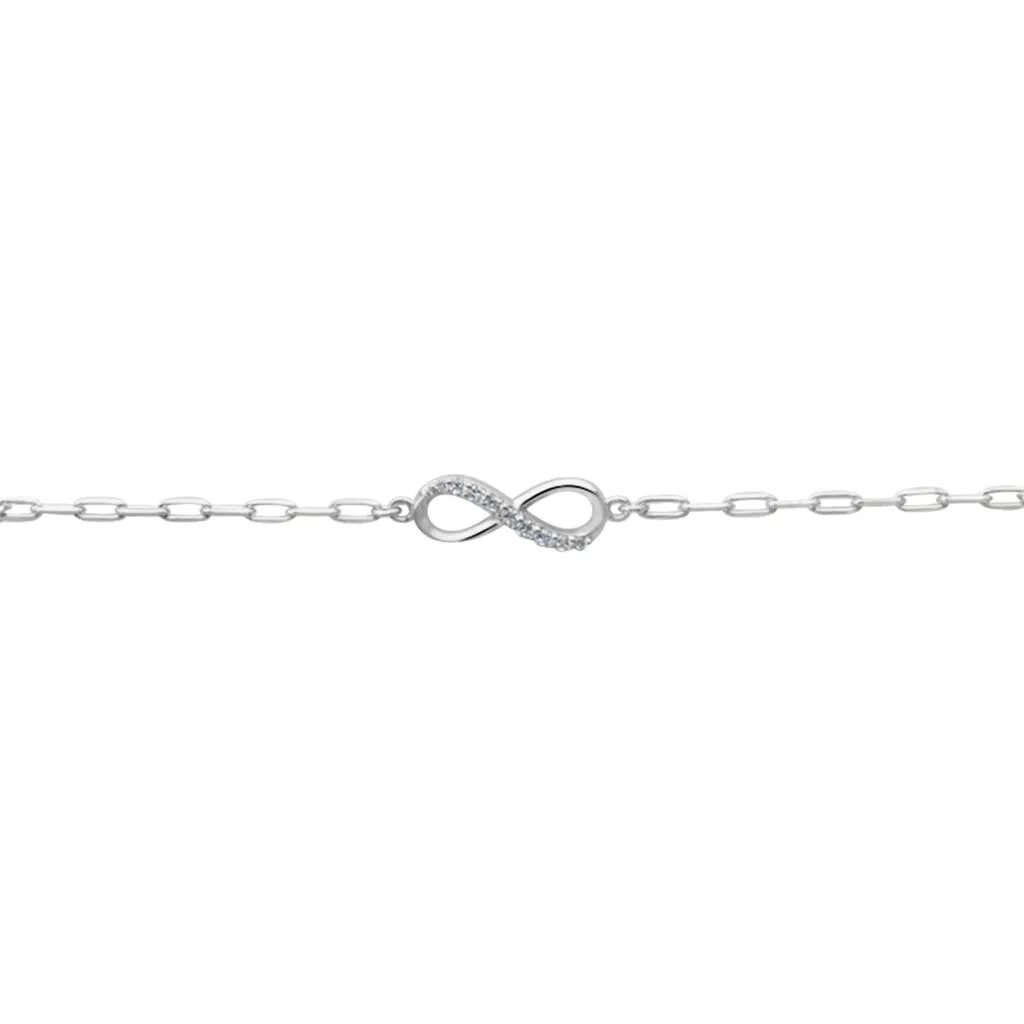 Bracelet Argent Blanc 925/1000 Infini Micro Setting Oxydes De Zirconium Maille Cheval 18.5cm