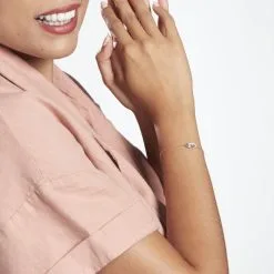 Bracelet Argent 925/1000 Cercles Entrelacés Maille Forçat Oxydes De Zirconium 18cm