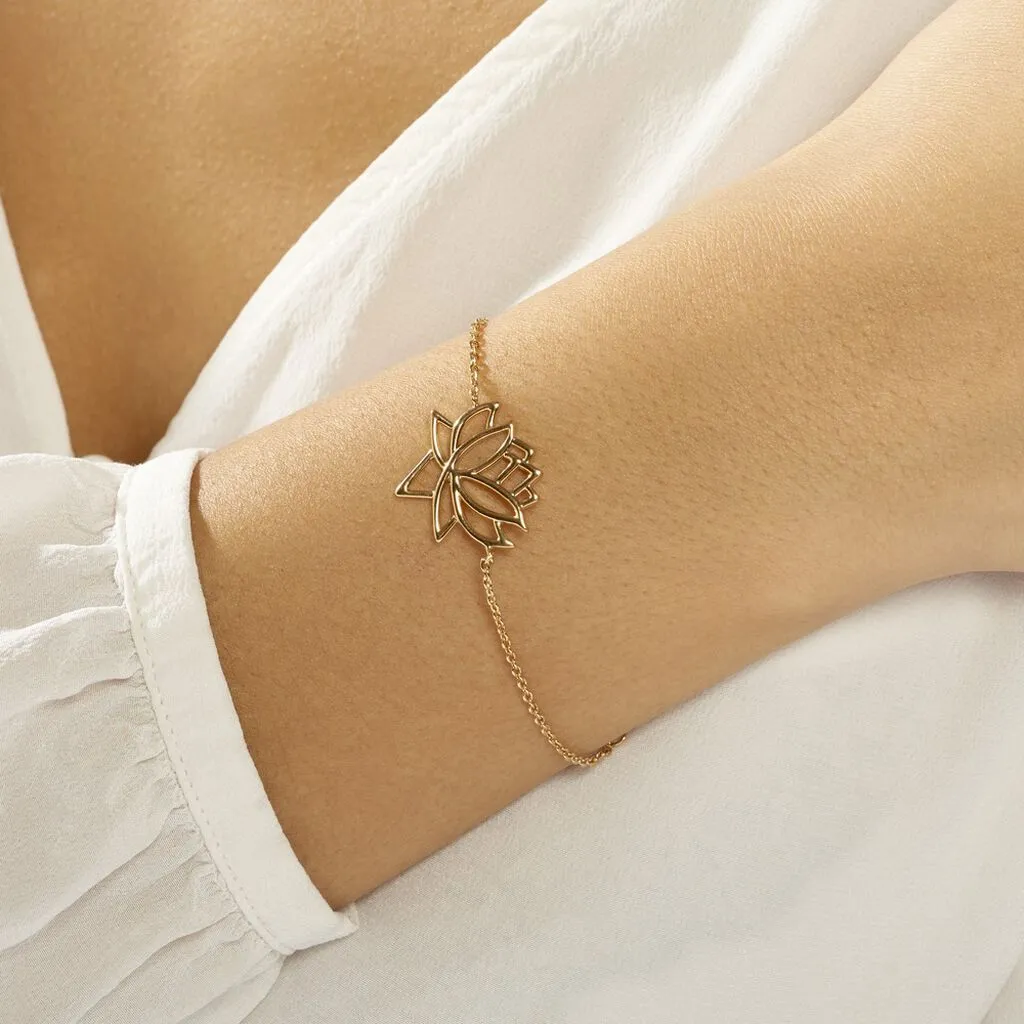Bracelet Plaqué Or Jaune Forme Lotus 18cm
