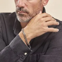 Bracelet Identite Acier Blanc Et Rose Maille Mecanique 21cm