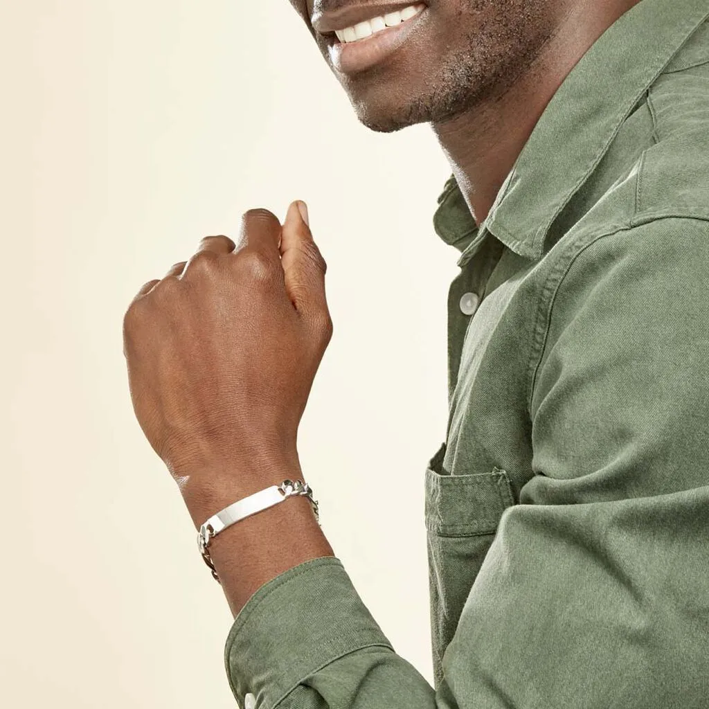 Bracelet Identite Argent Blanc 925/1000 Maille Alternee 1/3 Largeur 8.4mm Longueur 22cm