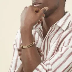 Bracelet Identite Plaque Or Jaune Plaque Rectangulaire Maille Alternee 1/3 10mm 22cm