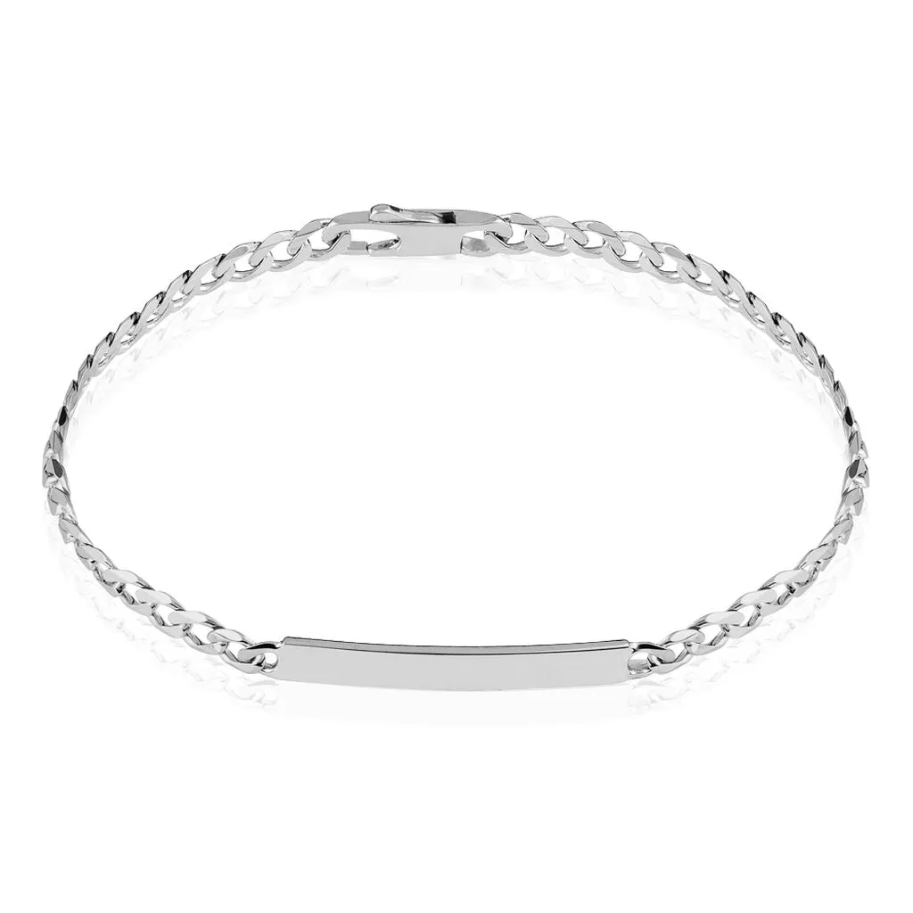 Bracelet Identite Argent Blanc 925/1000 Maille Gourmette Diamantee 4mm 18cm