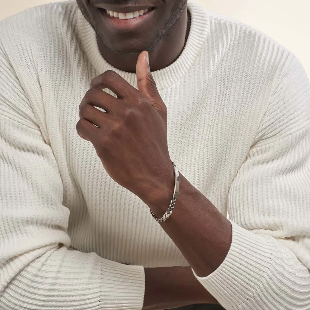 Bracelet Identite Argent Blanc 925/1000 Maille Gourmette Epaisseur 6.7mm 23cm