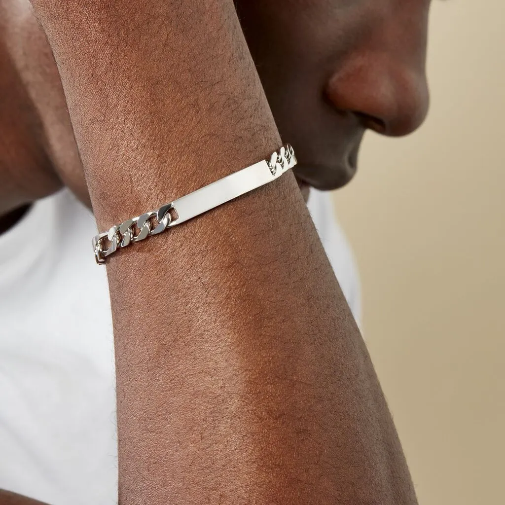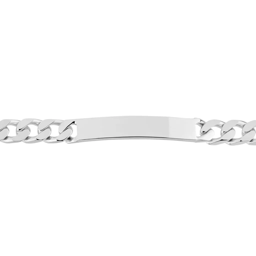 Bracelet Identite Argent Blanc 925/1000 Maille Alternee 1/3 Largeur 7mm 21cm