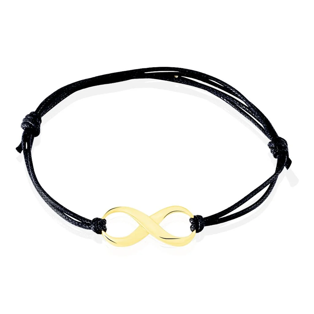 Bracelet Or Jaune 375/1000 Forme Huit Sur Cordon Coton Noir