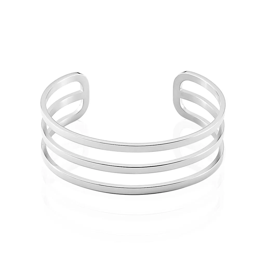 Bracelet Jonc Acier Blanc Ouvert 3 Rangs Ajoures