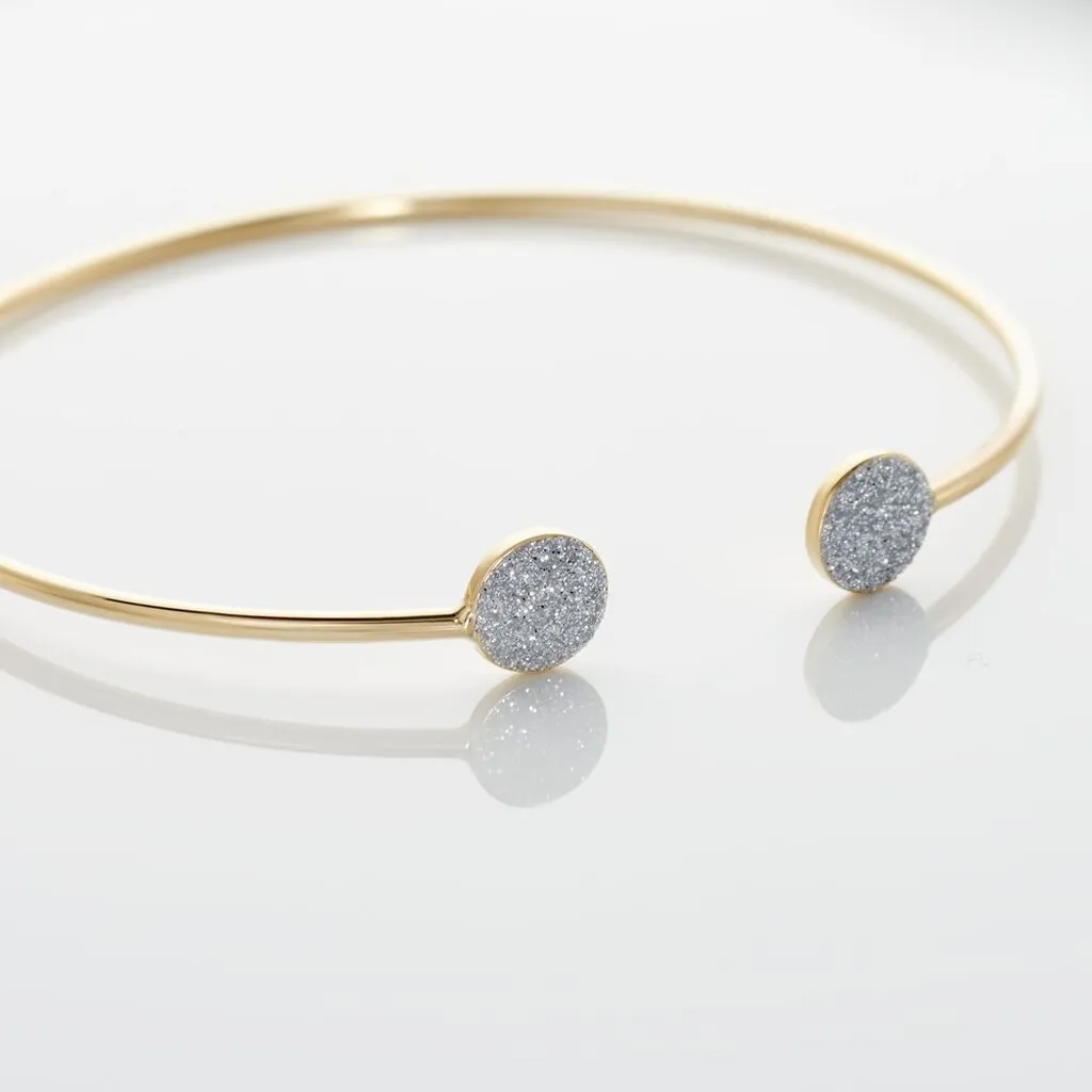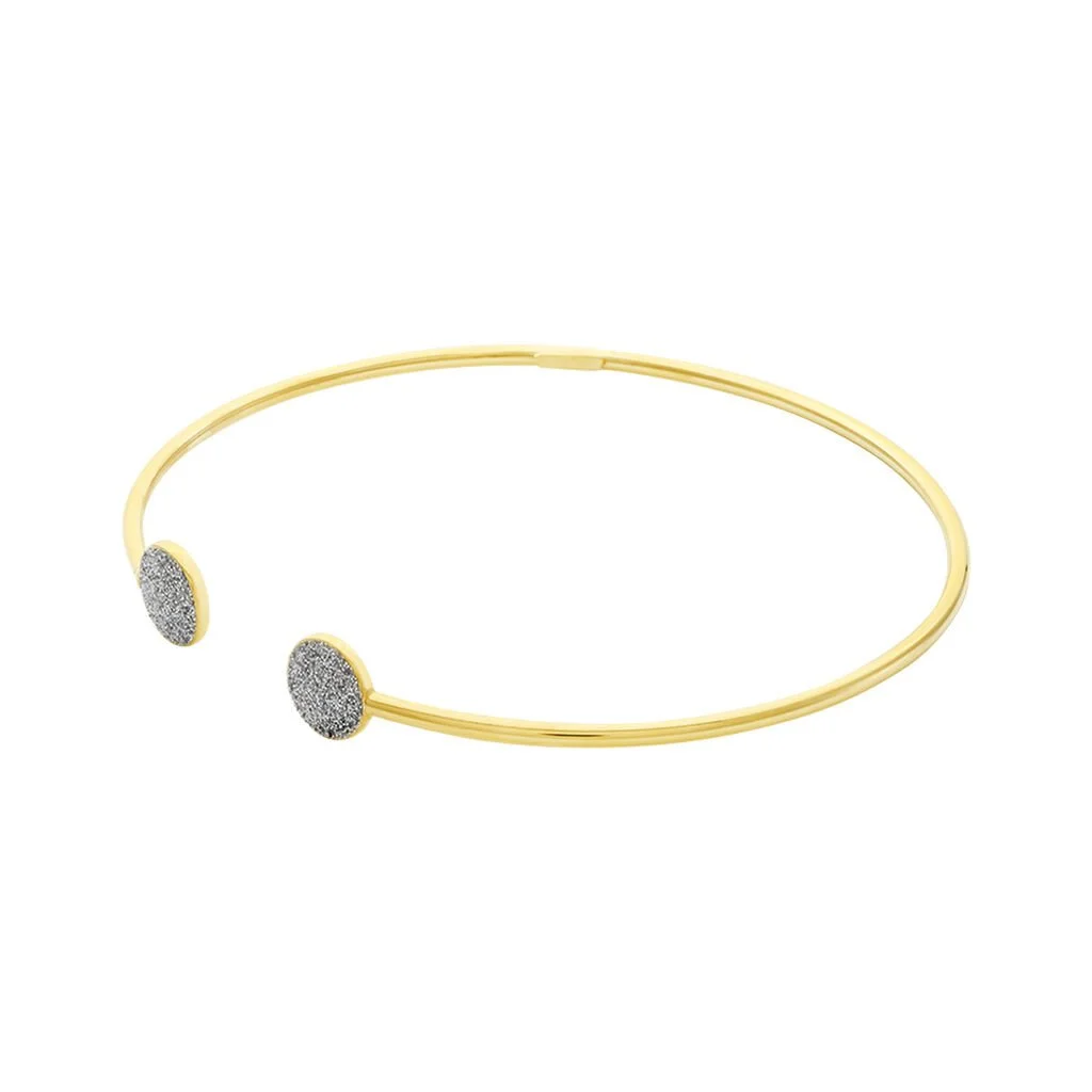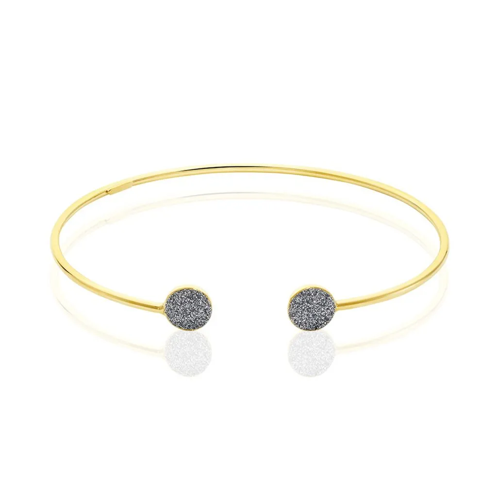 Bracelet Or Jaune 375/1000 Jonc Double Pastilles Glitter Silver
