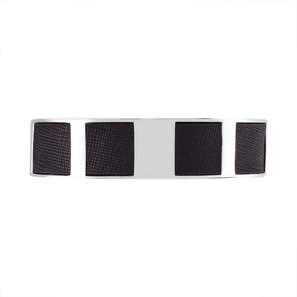 Jonc Argent 925/1000 Ouvert Cuir Noir Dia 70mm