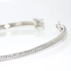Bracelet Jonc Or Blanc 375/1000 Pavage Diamants Diam 58mm
