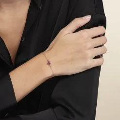 Bracelet Argent Blanc 925/1000 Cœur Glitter Rose Maille Forcat 19cm