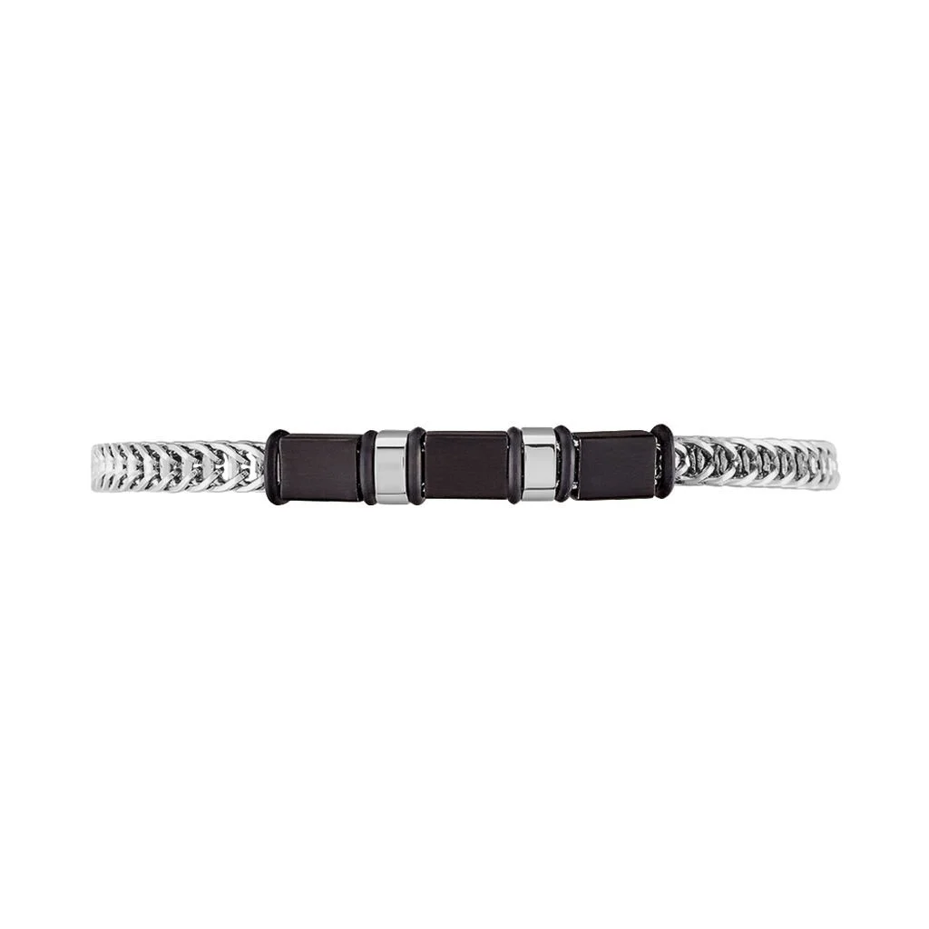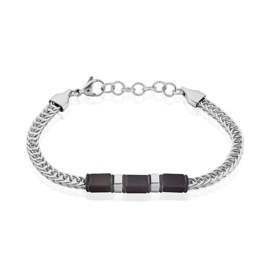 Bracelet Zero Limite Acier Maille Fantaisie Plaque Ip Noir Et Acier 21cm