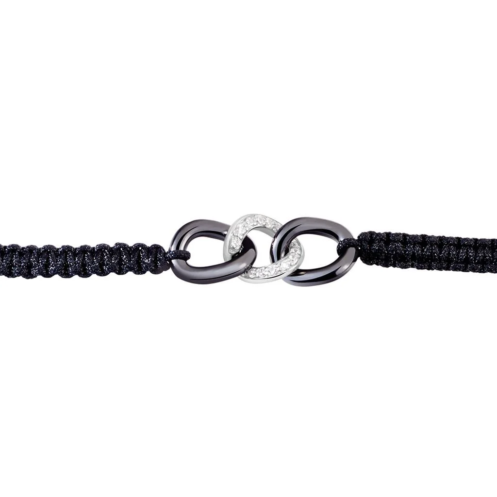 Bracelet Argent Blanc 925/1000 Ceramique Noire Oxydes De Zirconium Cordon Ajustable 17cm