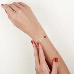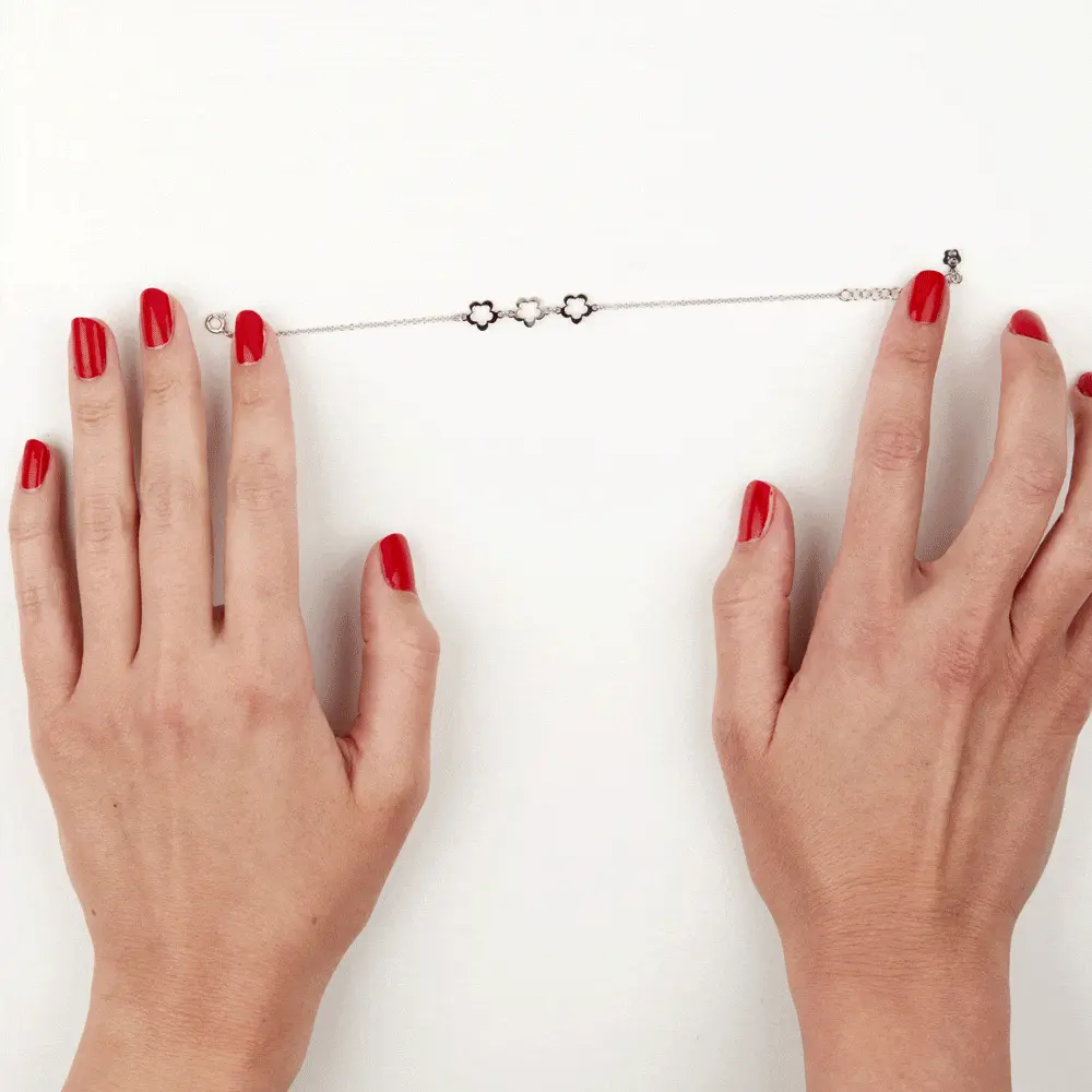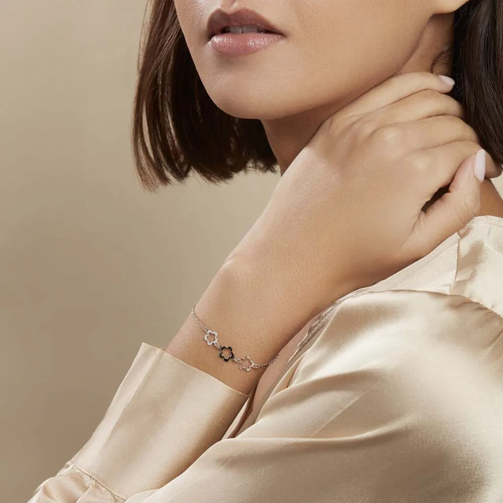 Bracelet Argent Blanc 925/1000 Triple Fleurs Ajourees Maille Forcat 19cm