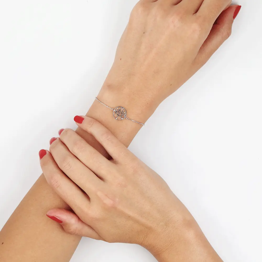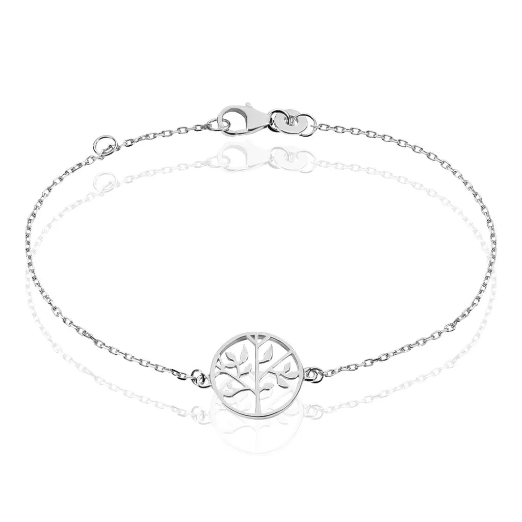 Bracelet Argent Blanc 925/1000 Arbre De Vie Maille Forcat 18cm