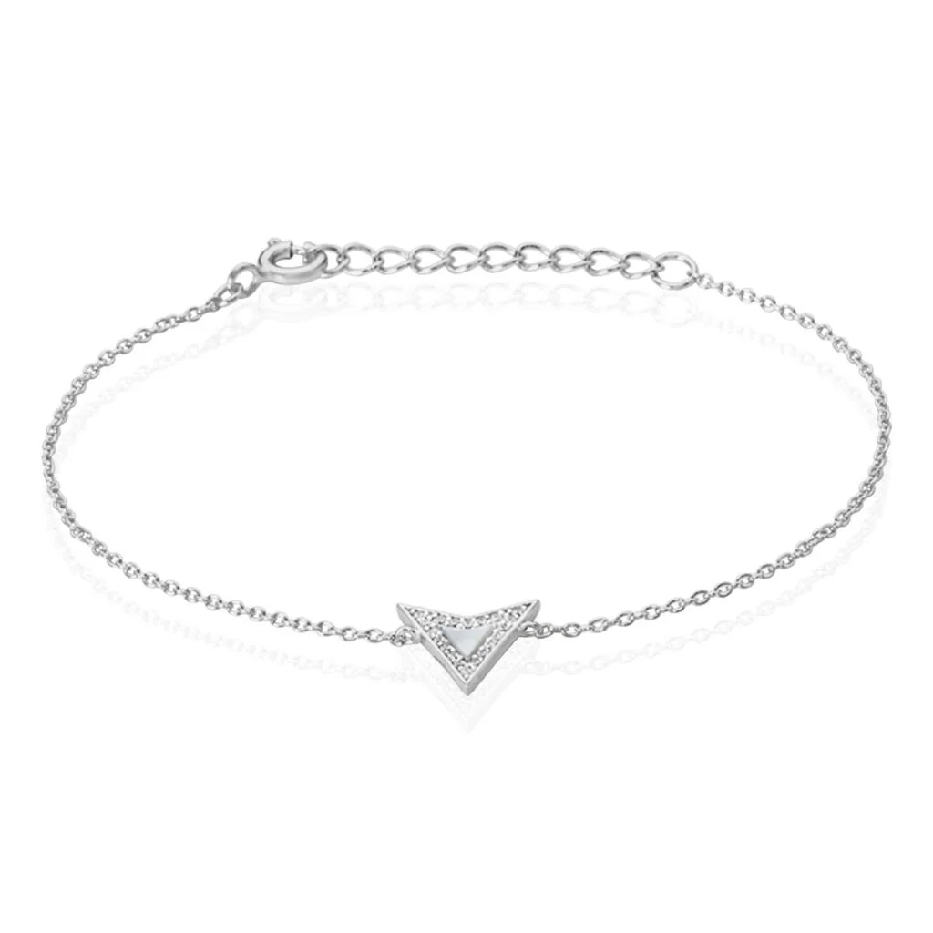 Bracelet Argent 925/1000 Triangle Oxyde Blanc 15.5 Cm + 3 Cm
