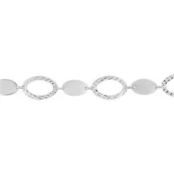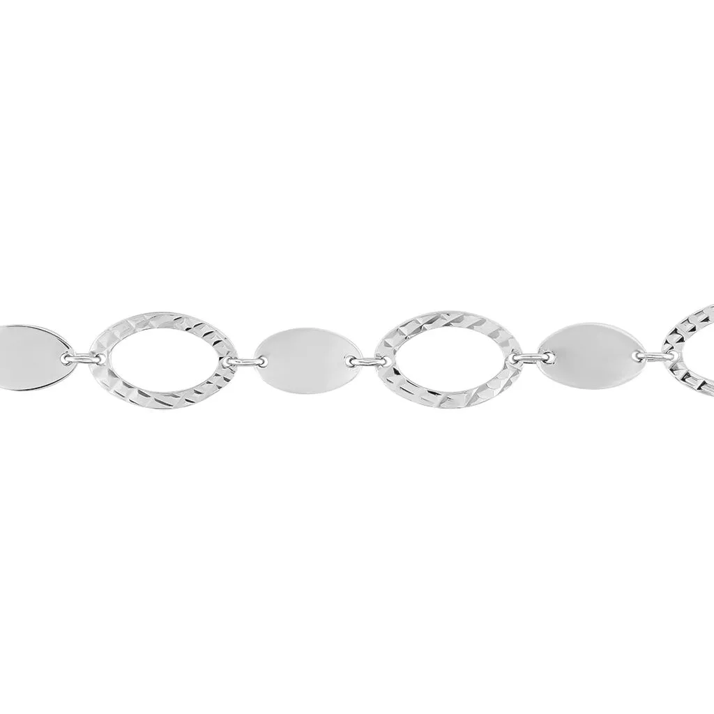 Bracelet Argent Blanc 925/1000 Alternance Pastille Et Cercles Effets Diamantes 19cm