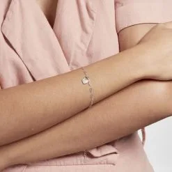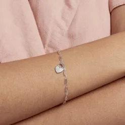 Bracelet Argent 925/1000 Pendentif Cœur Micro Setting Oxydes De Zirconium Maille Cheval 18.5cm
